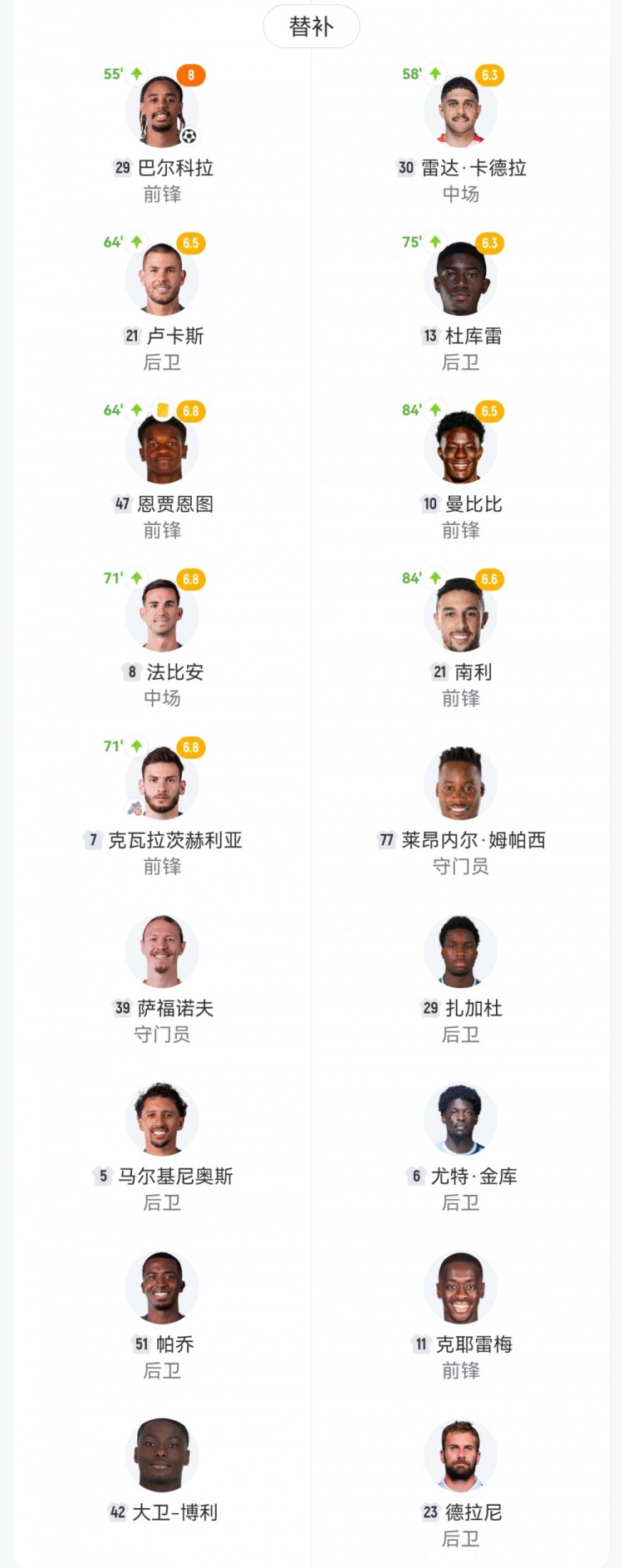 【双方首发及换人信息】