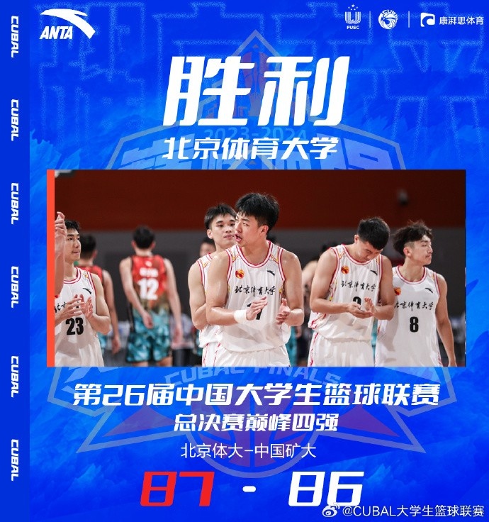 易边再战,中国矿大进攻端突然断电,半节仅得3分,而且防守端也是不在状态,潘睿彦里突外投连续取分,杨腾飞也接连突破,北体大一波15-3攻击波一度追到仅差3分,邵宇轩反击止血,吕克古接连上篮止颓,三节北体大64-69仅落后中国矿大5分。