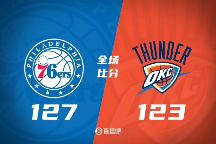 比赛开始,76人上来就接连外线发炮打出16-5的不错开局,随后霍姆格伦联手亚历山大止血追分,恩比德继续不错状态,杰林-威廉姆斯成为替补奇兵,助队首节末打出10-2进攻波反超2分,次节马克西终于开始发挥,里突外投连续砍分,但替补维金斯也能回应,双方展开胶着拉锯战,亚历山大继续保持火热手感,但76人得分点多半场反超了4分。下半场,76人继续轮番防守亚历山大,亚历山大进攻端也受到影响,霍姆格伦继续保持自己的出色状态,但76人在恩比德带领下还是领先到双位数,末节双方展开拉锯战,考文顿接连扔进三分,雷霆都能回应,马克西又站出来接连取分,但亚历山大接连造杀伤一度追到差4分,梅尔顿关键三分后76人又挑战成功,双方接连罚球取分,76人能保持两球以上领先,最终76人127-123力克雷霆,终结雷霆6连胜。