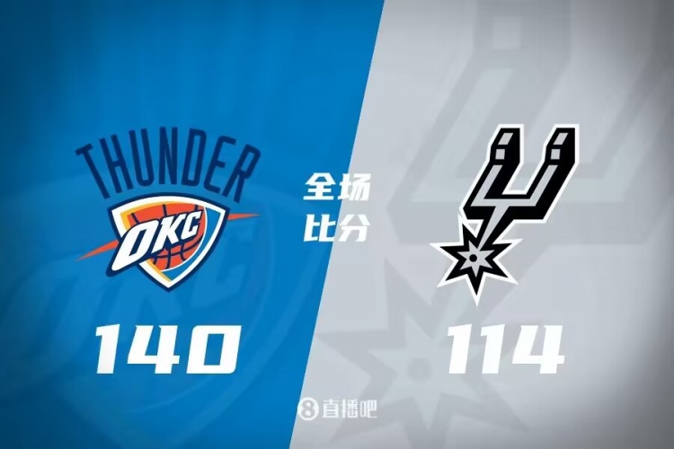 比赛开始,霍姆格伦和文班亚马就攻防两端都展开对飚,文班亚马防守端继续展示天赋,亚历山大后程发力单节还是上双,帮助雷霆一波小高潮建立7分领先,次节瓦塞尔状态不错,但雷霆替补多点开花拉开双位数领先,文班亚马继续扛起球队,半场雷霆领先11分。下半场比赛,亚历山大接连造杀伤,杰伦威也终于找到状态,文班能送助攻给出回应,随后亚历山大继续发力单节轰16分,替补外线也接连发炮,雷霆一波进攻波直接拉开20分以上领先,末节雷霆继续发力一度拉开30分以上领先,随后双方逐渐换上替补练兵,最终雷霆140-114大胜马刺,取得4连胜。