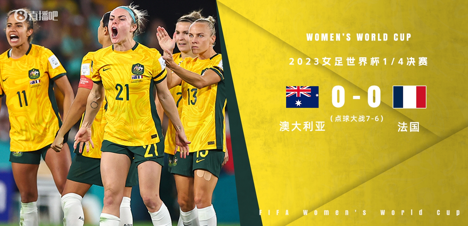 8月12日讯 北京时间8月12日15:00,女足世界杯八强战澳大利亚迎战法国的比赛,上半场福勒失空门德阿尔梅达精彩飞身解围,半场结束,澳大利亚女足0-0法国女足。下半场双方均无建树,最终常规时间结束澳大利亚女足0-0法国女足。加时赛肯尼迪自摆乌龙被吹无效,点球大战澳大利亚7比6法国队史首次晋级四强,将战英格兰与哥伦比亚的胜者。