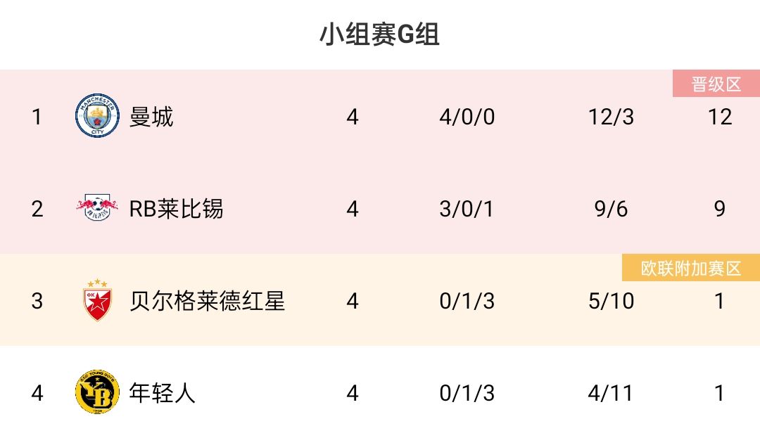11月8日讯 04:00欧冠小组赛G组第4轮,RB莱比锡客场对阵贝尔格莱德红星,哈维-西蒙斯精彩兜射破门,奥蓬达建功,亨里希斯乌龙,最终莱比锡2-1击败红星,与曼城携手出线。