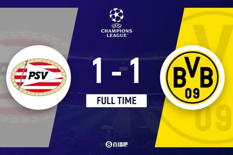 全场比赛结束,多特1-1埃因霍温。