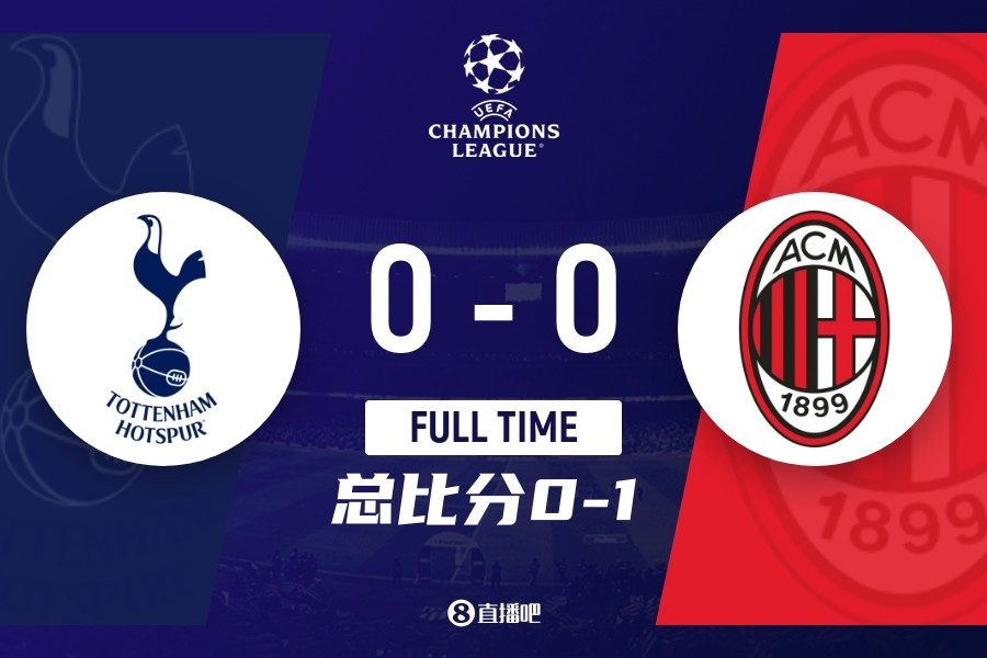 全场比赛结束,最终热刺0-0战平米兰,总比分0-1被淘汰。