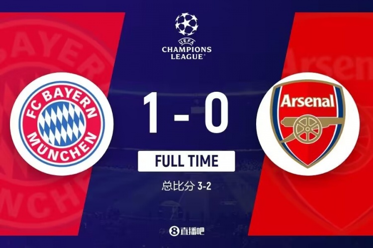 全场比赛结束,最终拜仁1-0阿森纳。