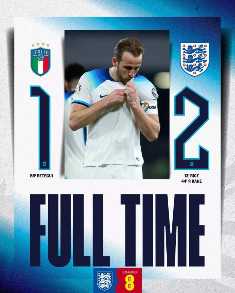3月24日讯 北京时间3月24日凌晨3点45分,欧洲杯预选赛C组首轮展开角逐,意大利坐镇主场迎战英格兰。上半场赖斯首开纪录,凯恩点射独享英格兰队史射手王,格拉利什失良机,下半场雷特吉收获国家队首球,卢克-肖染红。最终英格兰客场2-1战胜意大利,三狮军团取得欧预赛开门红。