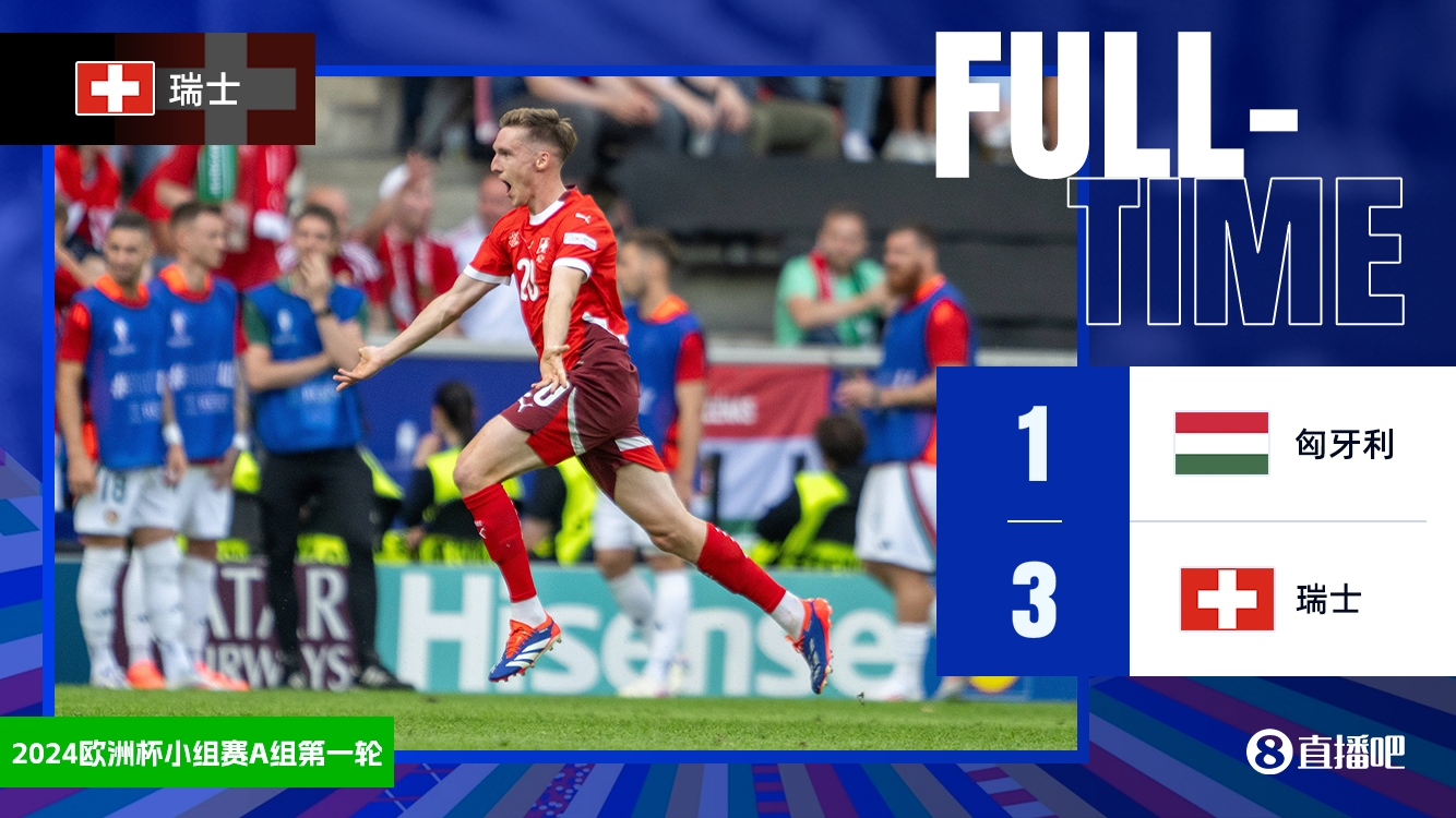 全场比赛结束,瑞士队3-1击败匈牙利队,收获开门红。