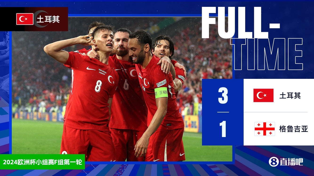 全场比赛结束,土耳其3-1格鲁吉亚。