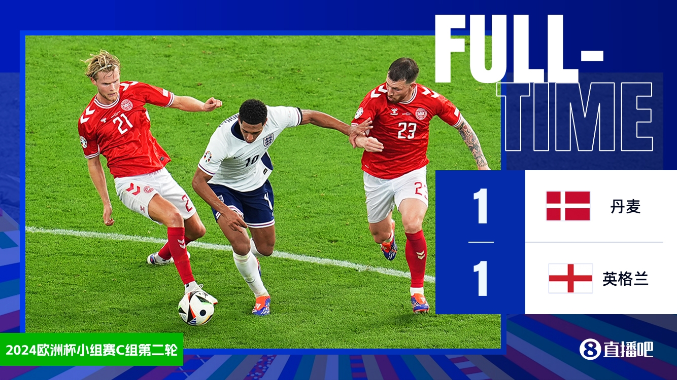 6月21日讯 北京时间6月21凌晨0点,2024年欧洲杯小组赛C组第2轮继续展开角逐,丹麦对阵英格兰的比赛将在法兰克福竞技场打响。上半场,凯恩左脚推射破门,随后尤尔曼德禁区外世界波远射破门,上半场比赛结束,英格兰1-1丹麦;下半场,双方互有攻守,但是没能改变比分,最终全场比赛结束,英格兰1-1丹麦,英格兰小组赛积4分排名第1,丹麦两轮两连平积2分。
