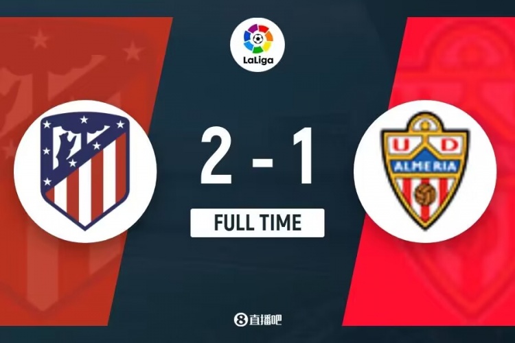 全场比赛结束,马竞2-1阿尔梅里亚。