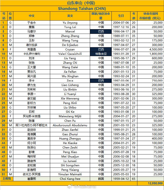 朱艺在社媒上写道:“山东泰山队亚冠精英联赛附加赛报名名单。球队报满了35人,其中包括4名外援,归化球员德尔加多首次以纯中国球员身份报名,夏窗撤销外援均未获报名。由于一线队U21球员仅有3人,因此补充了7名征战中乙联赛的B队球员名列其中,达到满额(报名要求U21球员至少10人,如不满10人则按数扣减人数上限)。”