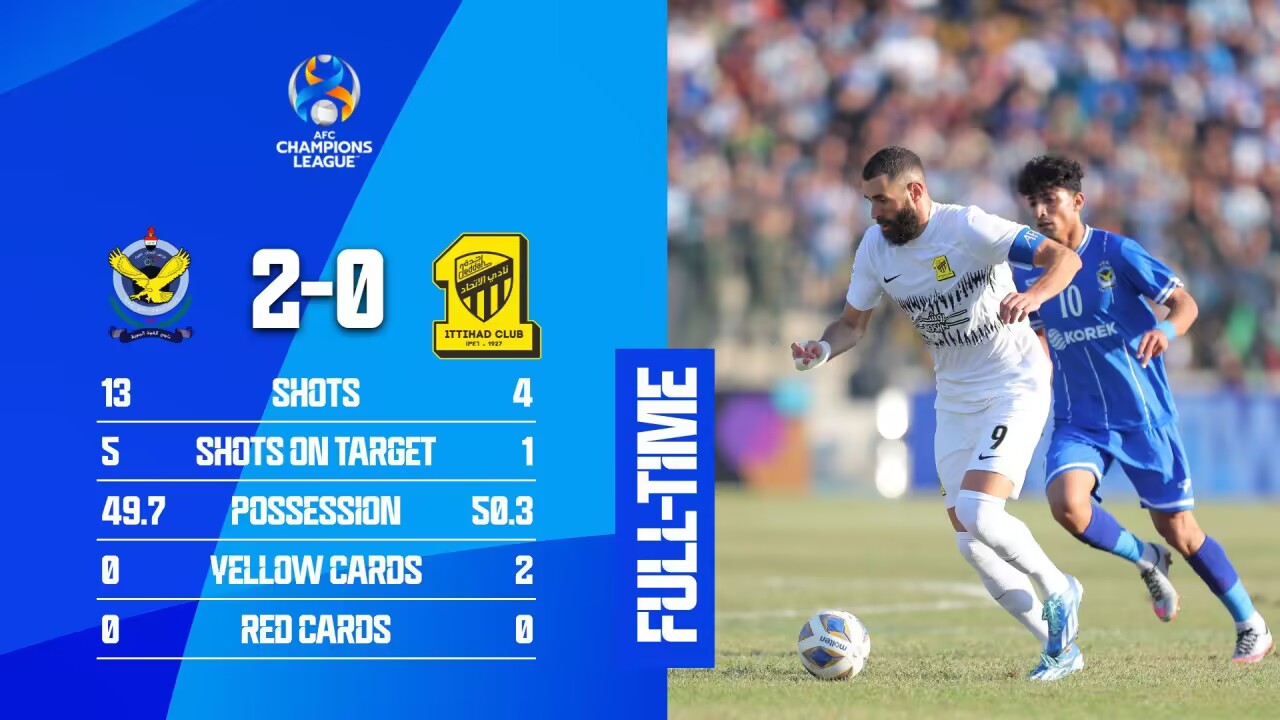 全场比赛结束,吉达联合0-2巴格达空军。