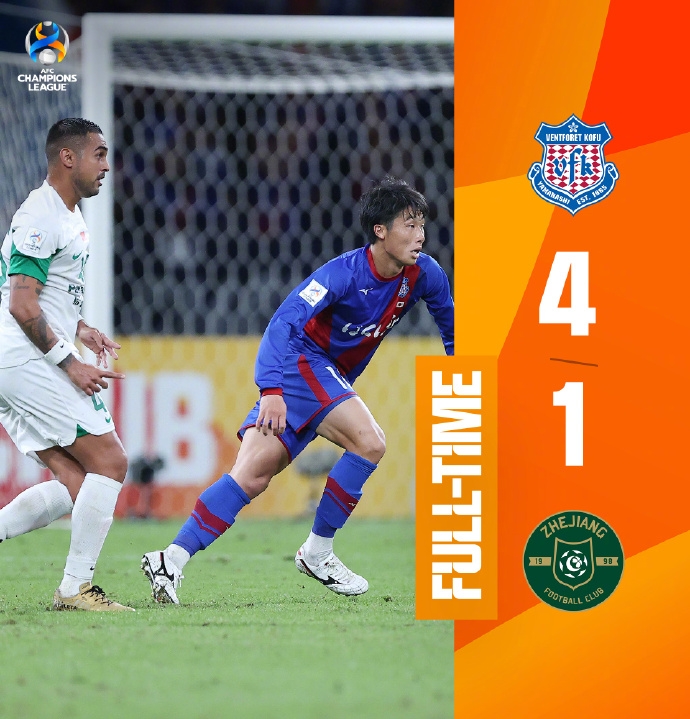 11月8日讯 北京时间11月8日18:00,亚冠H组第四轮浙江队挑战甲府风林的比赛,上半场乌塔卡单刀破门,热图利奥补时抢射扩大比分,浙江场面极其被动,半场结束,浙江客场0-2甲府风林。下半场莱昂纳多造点+点射,关口正大爆射扩大比分,鸟海芳树单刀再下一城,最终浙江客场1-4甲府风林暂积3分小组垫底。