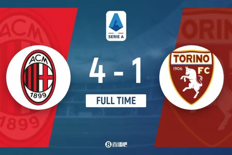 全场比赛结束,最终AC米兰4-1都灵。