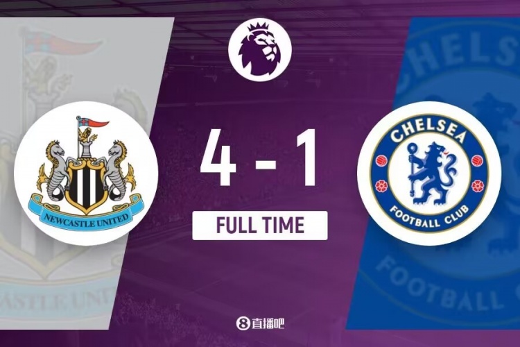 下半场伤停补时5分钟,全场比赛结束,最终切尔西1-4纽卡斯尔。