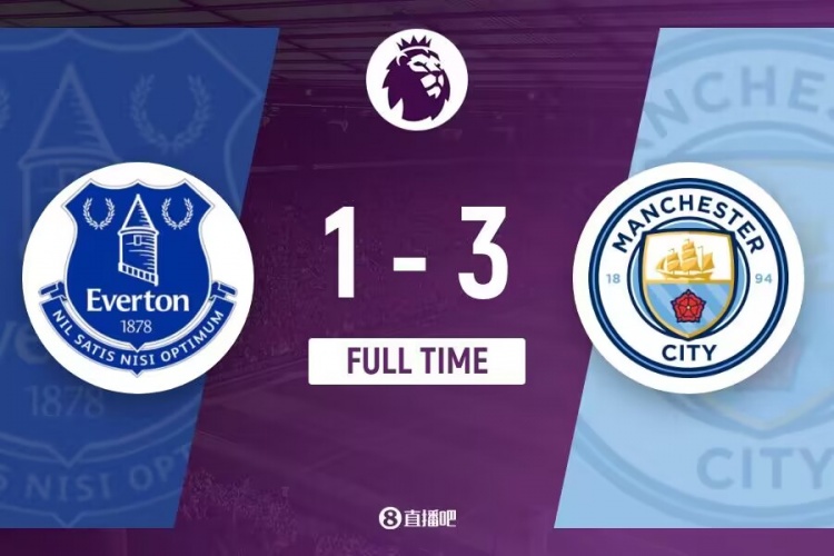 下半场补时6分钟。最终全场比赛结束,曼城3-1埃弗顿。