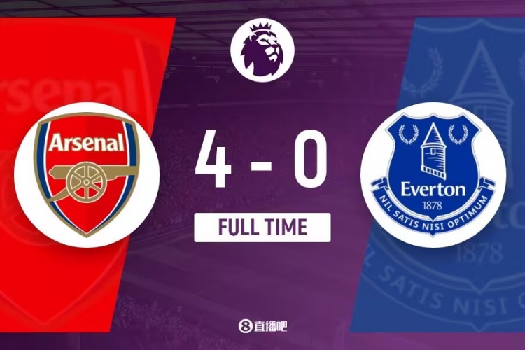 下半场伤停补时2分钟,全场比赛结束,最终阿森纳4-0击败埃弗顿。
