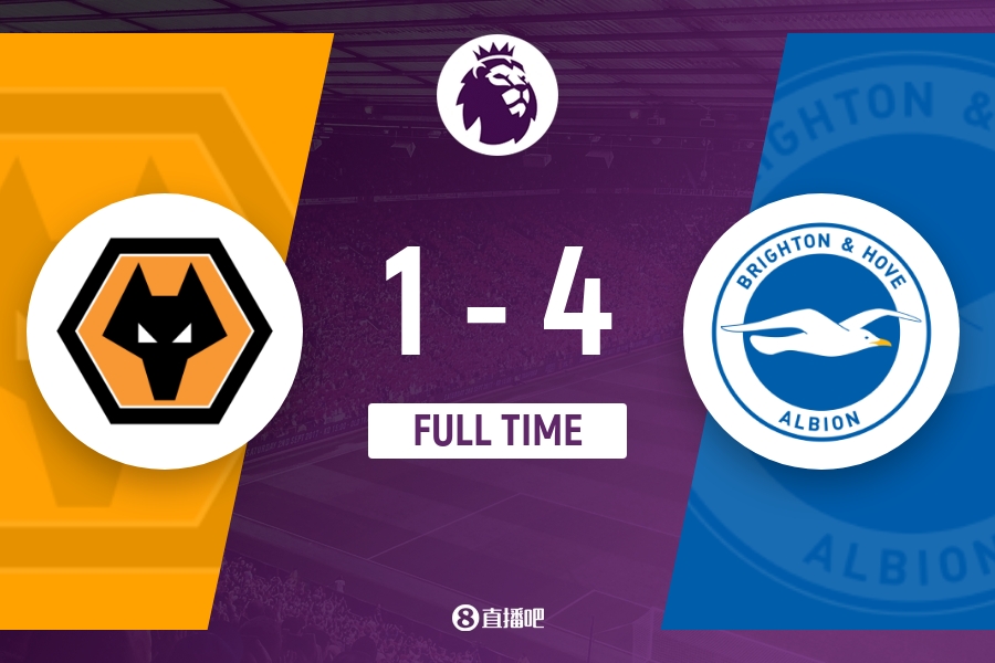 比赛第51分钟与第55分钟,马奇4分钟上演梅开二度,布莱顿4-0领先狼队。