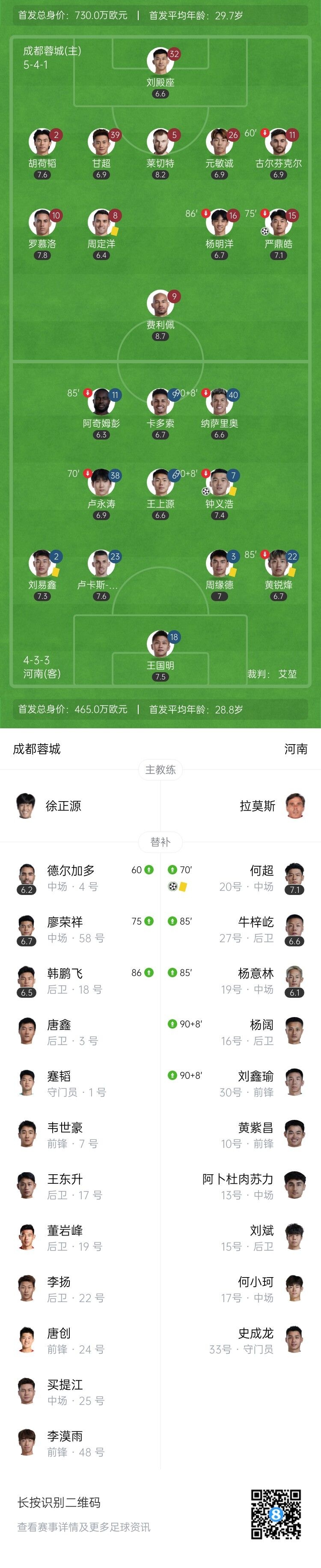 10月31日讯 北京时间10月31晚上19:35,中超联赛第29轮,成都蓉城坐镇成都凤凰山足球场迎战河南。上半场,胡荷韬失单刀,随后他破门被主裁吹掉引争议,严鼎皓任意球破门。下半场,钟义浩闪击扳平,何超世界波。全场结束,成都蓉城1-2河南。本场过后,成都蓉城积59分,距离榜首的上海海港4分已无缘争冠;河南积36分暂升第10位。