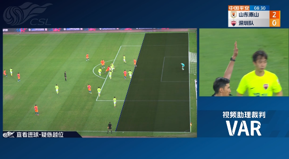 第6分钟,又是深圳后场出现失误,陈蒲禁区起球,费莱尼插上头球破门,VAR判定陈蒲越位在先,进球无效。↓