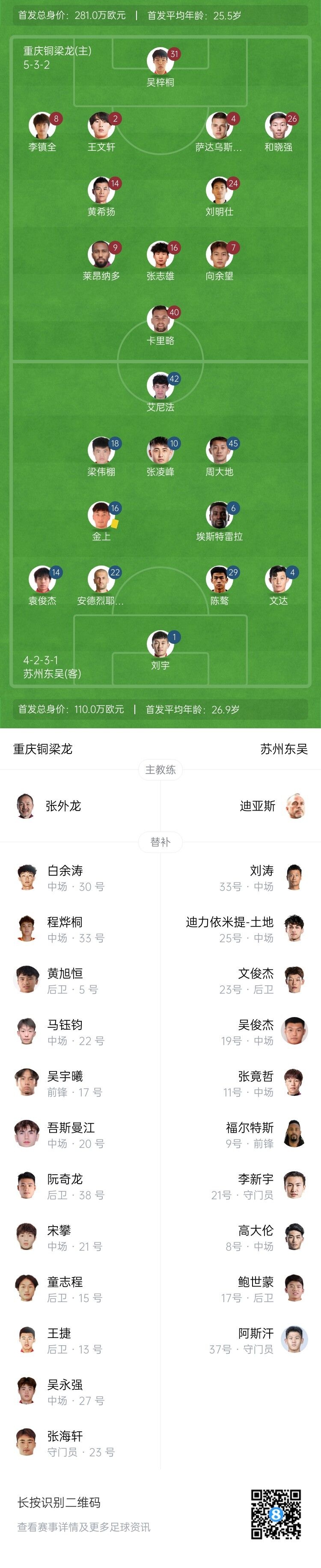 11月1日讯 北京时间11月1日下午14:30,中甲第29轮,重庆铜梁龙坐镇铜梁龙体育场迎战苏州东吴。上半场,双方均无建树。下半场,重庆铜梁龙围攻无果,刘宇筑起叹息之墙。全场结束,重庆铜梁龙0-0苏州东吴。
