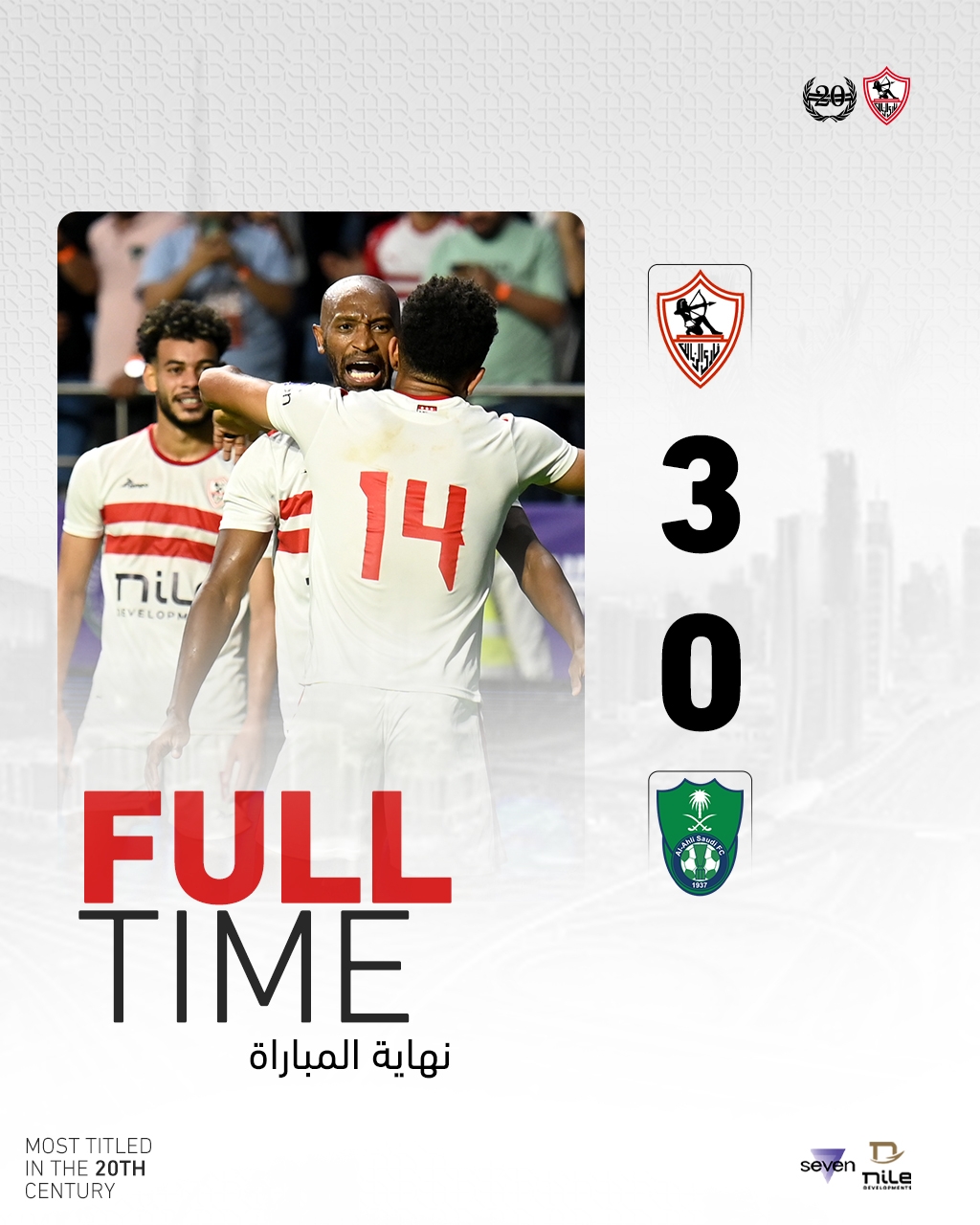 1月29日讯 迪拜杯决赛,埃及球队扎马雷克2-0战胜沙特球队吉达联合夺冠,上半场31分钟扎马雷克就1-0领先,下半场扎马雷克再进一球,第55分钟吉达国民被罚下一人,比赛终场前扎马雷克破门杀死比赛悬念。3-0的比分维持到终场,最终扎马雷克夺冠。