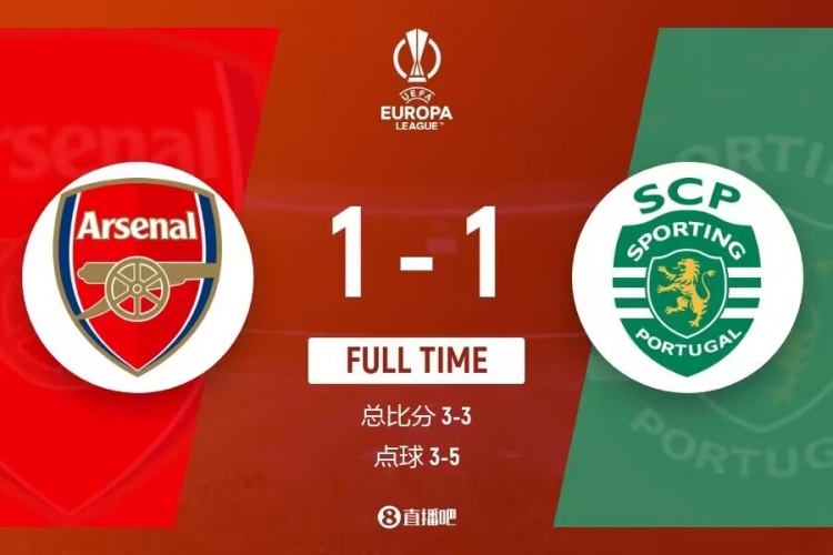 全场比赛结束,阿森纳经过120分钟鏖战+点球大战,以4-6不敌葡体。