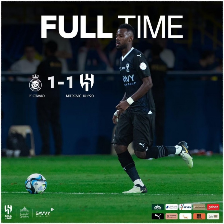 下半场补时8分钟,最终,利雅得胜利1-1利雅得新月。