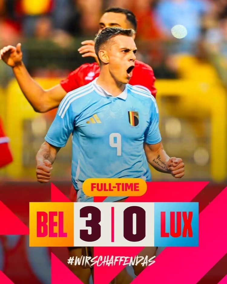 全场比赛结束,比利时3-0卢森堡。