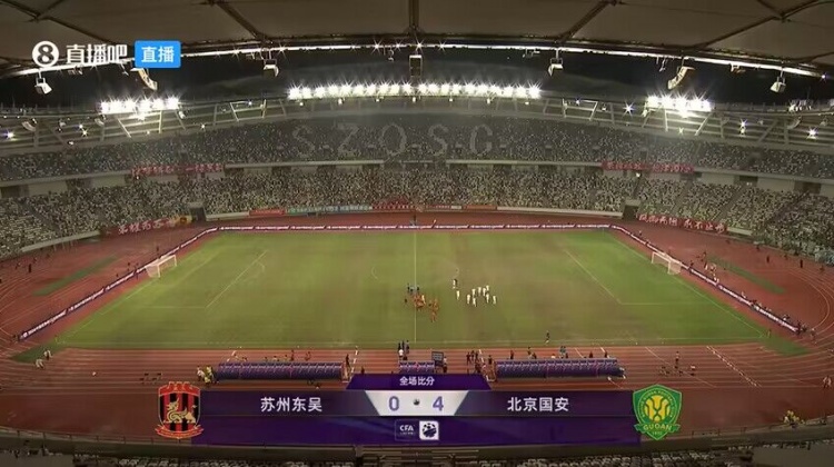 全场比赛结束,北京国安4-0苏州东吴。