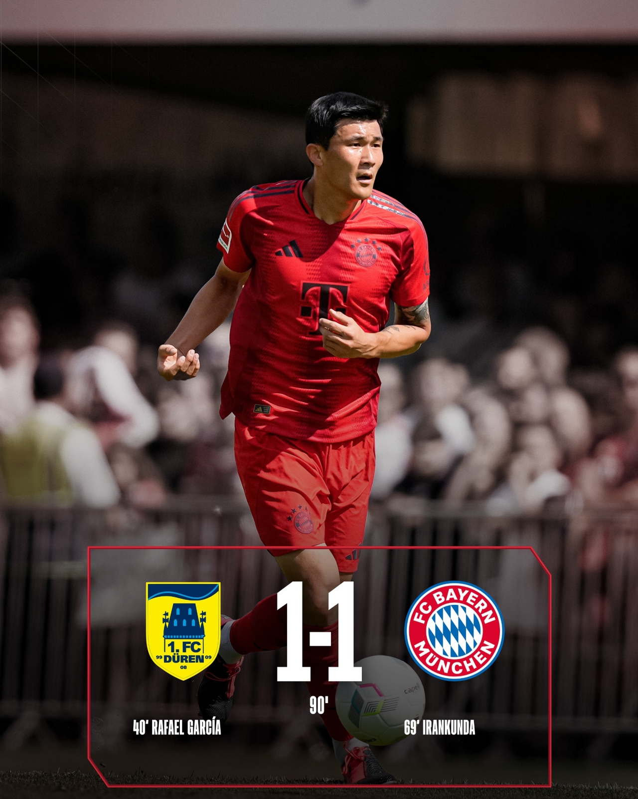 7月28日讯 北京时间7月28日晚21时30分,2024年足球友谊赛展开角逐,拜仁慕尼黑对阵德国第四级别球队迪伦。上半场拜仁新援伊藤洋辉首次先发即伤退,拜仁后防玩火失误致丢球,下半场18岁小将伊兰昆达替补救主。最终拜仁慕尼黑1-1战平迪伦,拜仁下场热身赛将迎战热刺。