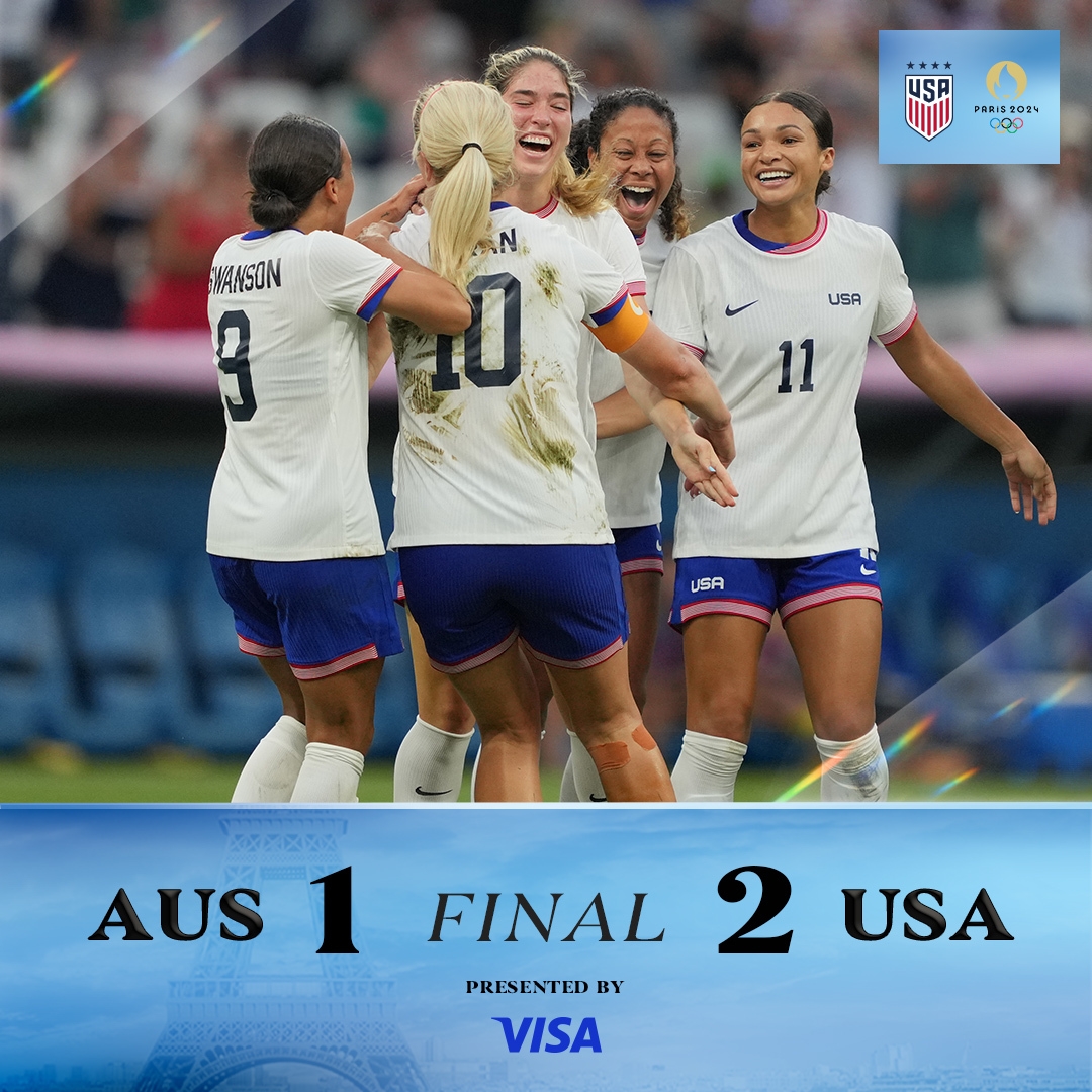 08月01日讯 奥运女足小组赛B组最后一轮,美国女足2-1战胜澳大利亚女足。