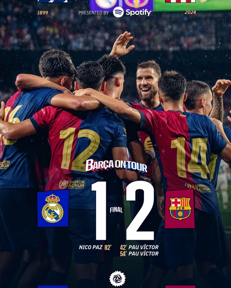 8月4日讯 季前友谊赛,皇马对阵巴萨。上半场第13分钟,比赛因雷暴天气暂停一个小时再重启,居勒尔破门被吹,保罗-维克托连场破门。易边再战,保罗-维克托完成双响,尼科帕兹扳回一球。最终皇马1-2巴萨。皇马遭遇热身两连败,巴萨两连胜。