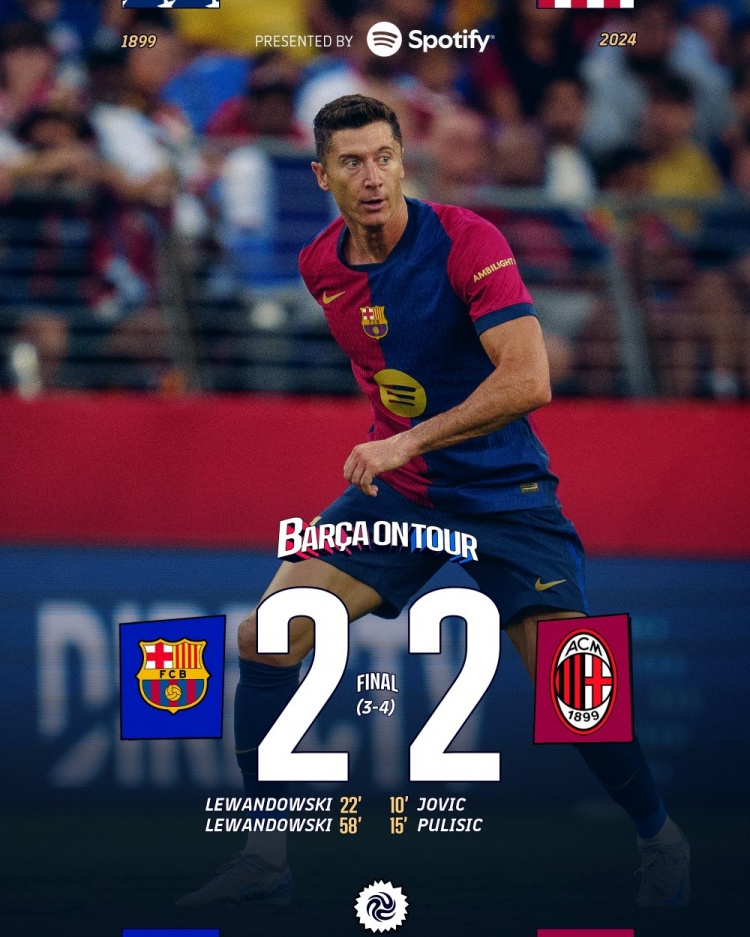 AC米兰第二罚,打进!AC米兰1-0巴萨↓