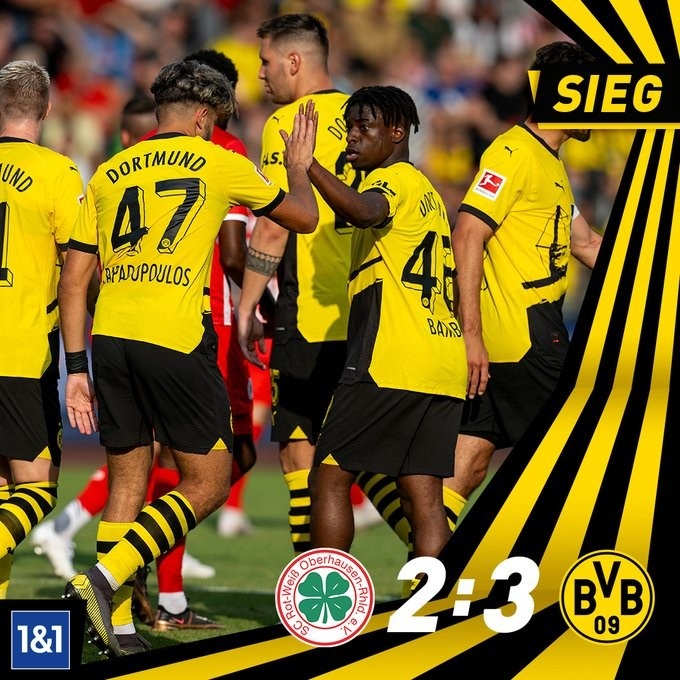 红白奥博豪森在第6分钟由埃泽克温首开记录,多特在第14分钟扳平,小阿扎尔助攻罗伊斯破门。
