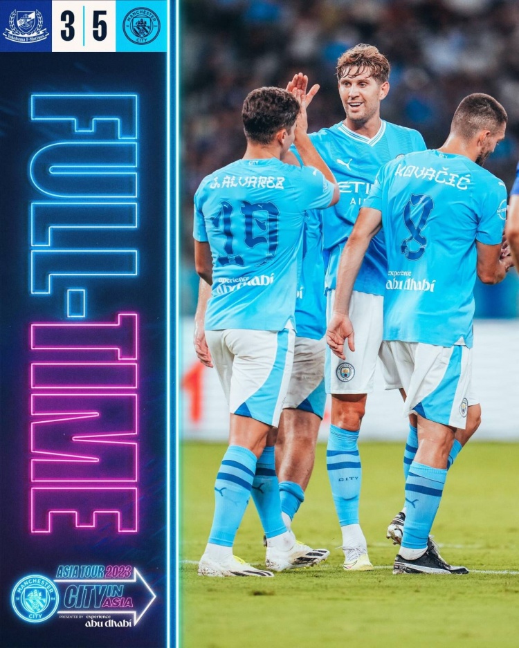 伤停补时4分钟。全场比赛结束,曼城5-3横滨水手。
