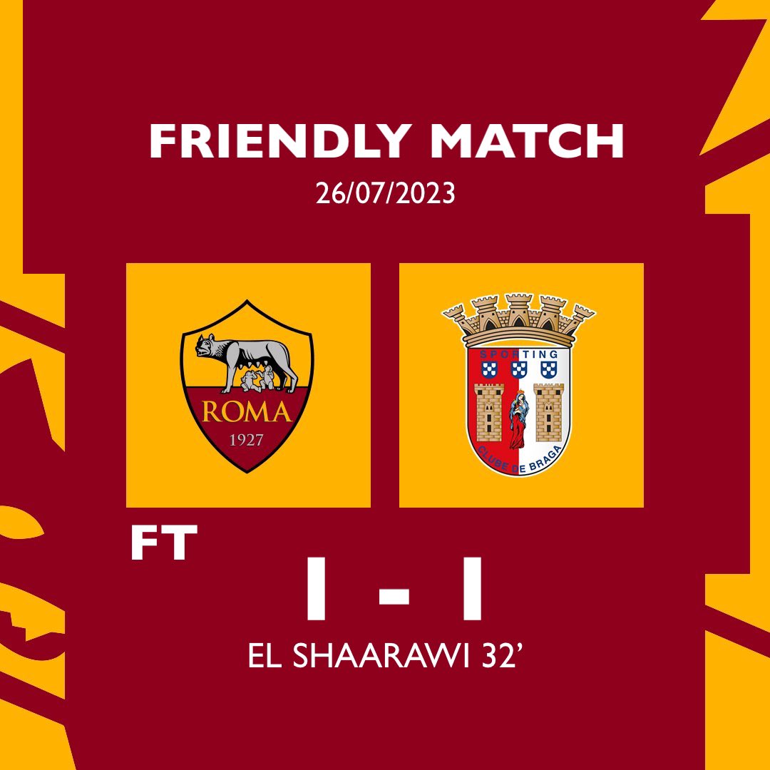 7月27日讯 友谊赛对阵,罗马与布拉加迎来交手。第32分钟,沙拉维为罗马取得领先,第86分钟,布鲁马为布拉加绝平。最终罗马1-1战平布拉加。