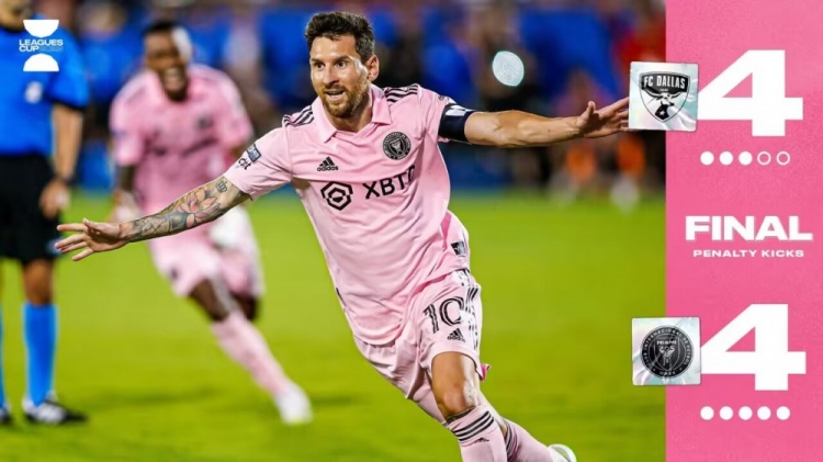 8月7日讯 北京时间8月7日早上9:30,联盟杯1/8决赛,迈阿密国际vs达拉斯FC。上半场,梅西不停球左脚世界波破门,丘基隆扳平比分,尾声阶段卡姆戈帮助达拉斯反超。易边再战,瓦拉斯科任意球破门,克雷马斯基替补建功,泰勒自摆乌龙,梅西任意球造乌龙,随后梅西直接任意球破门。最终迈阿密国际4-4达拉斯FC,双方进入点球大战。点球大战中迈阿密5罚全中,达拉斯波米卡尔失点。最终迈阿密点球5-3总比分9-7逆转达拉斯晋级8强。