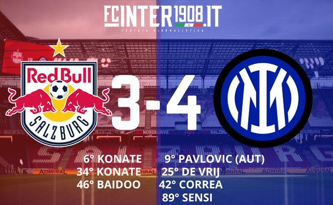 第24分钟,巴雷拉45度角斜传到禁区,巴斯托尼脚后跟做球,德弗里顺势推射破门,萨尔茨堡红牛1-2国际米兰!↓