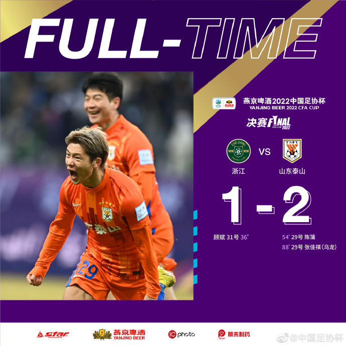直播1月15日讯 北京时间1月15日下午15:30,足协杯决赛,浙江对阵山东泰山。上半场,赵博出击化解单刀,张弛失良机,穆谢奎头球造险,王大雷黄油手送礼,顾斌破门。下半场,陈蒲扳平比分,莫伊塞斯造乌龙山东泰山最后时刻反超比分。全场结束,山东泰山2-1浙江,豪取足协杯三连冠,这也是他们的第8座足协杯冠军奖杯。