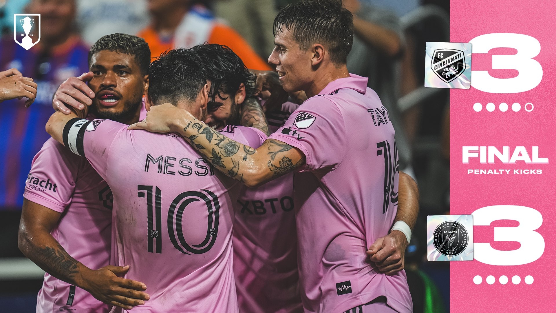最终,点球大战迈阿密国际8比7辛辛那提。
