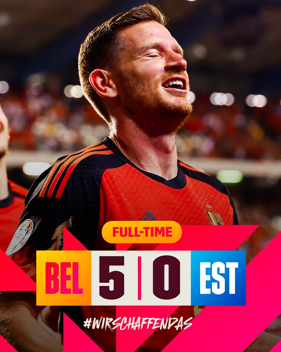 本场过后,比利时在小组中4胜1平,与奥地利同分,以净胜球优势暂列榜首。