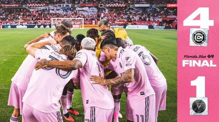 伤停补时3分钟,全场比赛结束,迈阿密国际1-4芝加哥火焰。