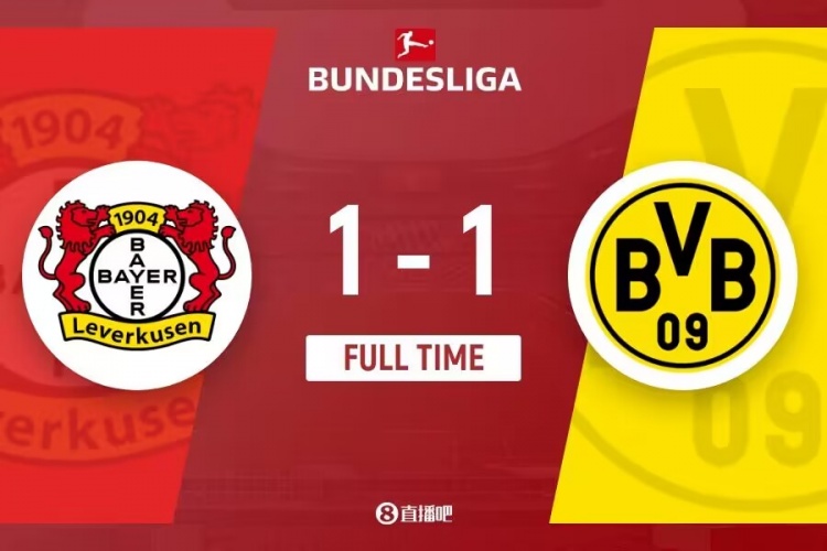 全场比赛结束,多特1-1勒沃库森。