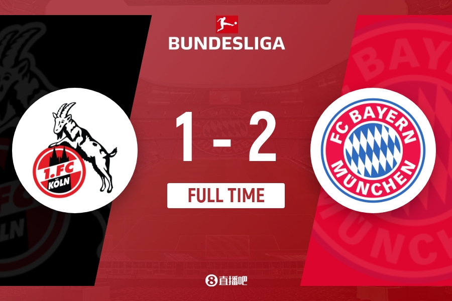 下半场伤停补时5分钟,全场比赛结束,最终拜仁2-1科隆。