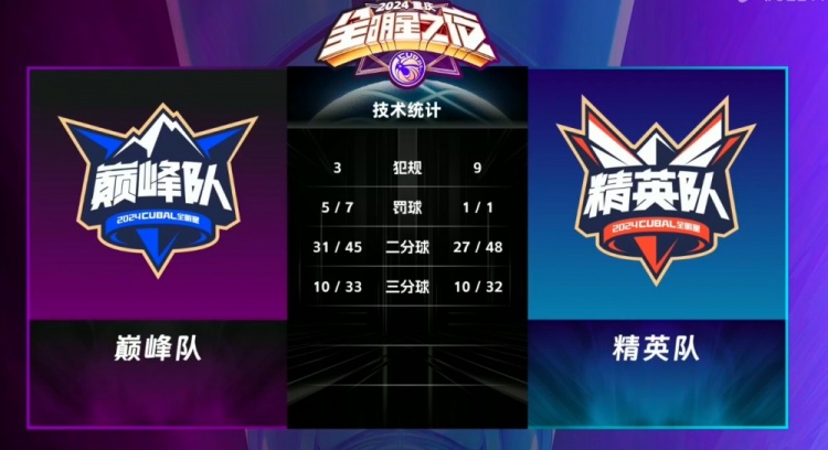 相关阅读:CUBAL全明星之夜巅峰队精英队篮球