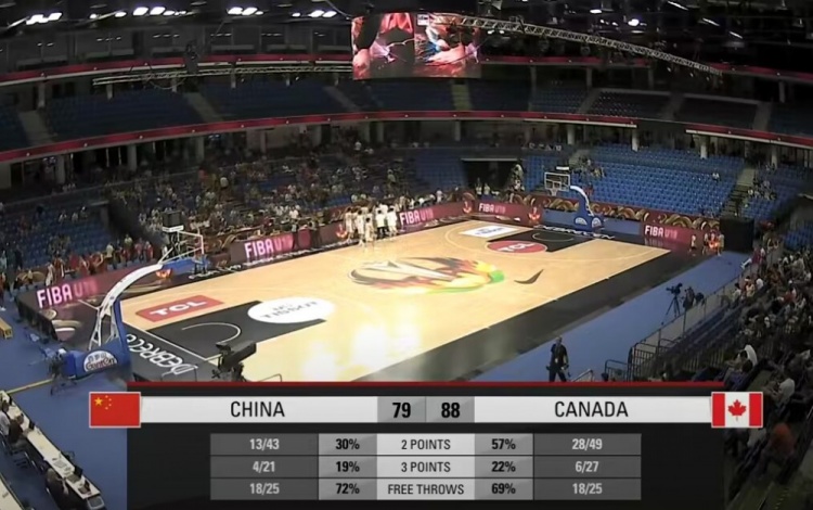 比赛上来,中国男篮表现慢热,前两分多钟的时间里没有得分,加拿大男篮趁势连拿五分取得领先,不过及时调整的中国男篮及时追上,此后两队一直保持拉锯,进入次节中国男篮的进攻出现了大问题,单节只拿到了8分,分差被加拿大男篮逐渐拉开到了两位数,半场结束时中国男篮落后13分;下半场回来加拿大男篮的进攻也开始出现下滑,但中国男篮并没有把握住缩小分差的机会,末节赵维伦个人突然爆发连续得分但依旧未能帮助中国男篮逆转,最终不敌加拿大男篮,小组赛遭遇两连败。