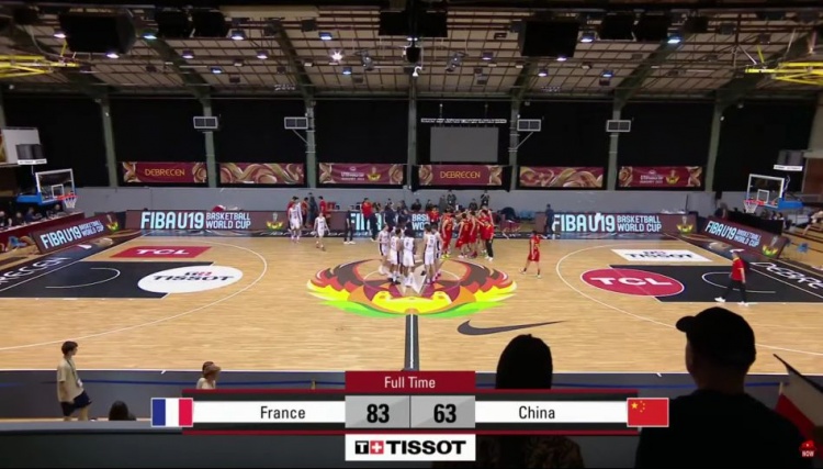 比赛开局,两队互相在对方禁区内做文章,比赛陷入拉锯战,此后赵维伦飙中一记三分率先在外线开张,法国队很快予以回应,但节末赵维伦外线再度拔中,帮助中国队首节以18-17暂时领先。次节法国队率先得分取得反超,中国队很快打出一波10-2的小高潮建立领先优势,但法国队很快回应一波高潮再次将比分追上,半场结束前阿金萨三分命中,法国队37-35反超比分。易边再战,中国队连续出现失误,陷入得分荒,法国抓住机会连续打进一举领先到15分,但中国队很快调整状态,杨瀚森连续送出妙传,分差被缩小至个位数,三节结束前偰李永炜三分飙中,帮助中国队54-58仅落后四分。末节回来,法国队又是借中国队连续进攻不中打出一波高潮,分差重新来到两位数,杨瀚森强硬打成2+1止血,但此后球队又是接连出现失误,法国队趁机将比分拉开,此后中国队追分未果,首战63-83遗憾落败。