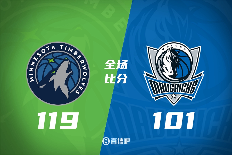 比赛开打后森林狼进攻状态低迷,东契奇予取予求单节独得16分,率队打出19-4梦幻开局,末段森林狼及时复苏缩小分差,首节结束时独行侠领先4分,次节回来,双方你来我往继续僵持,纳兹-里德突然爆发单节4中4贡献13分,东契奇延续火力率队回应,半场战罢,独行侠依然领先1分。易边再战后唐斯杀伤内线连续取分,森林狼稳扎稳打实现反超,末段两队继续鏖战,三节结束后森林狼反超5分,末节上来,李凯尔和里德连续取分,联手率队将分差拉开到两位数,独行侠进攻乏力追分无望,比赛提前失去悬念,最终森林狼119-101大胜独行侠终结对手四连胜。