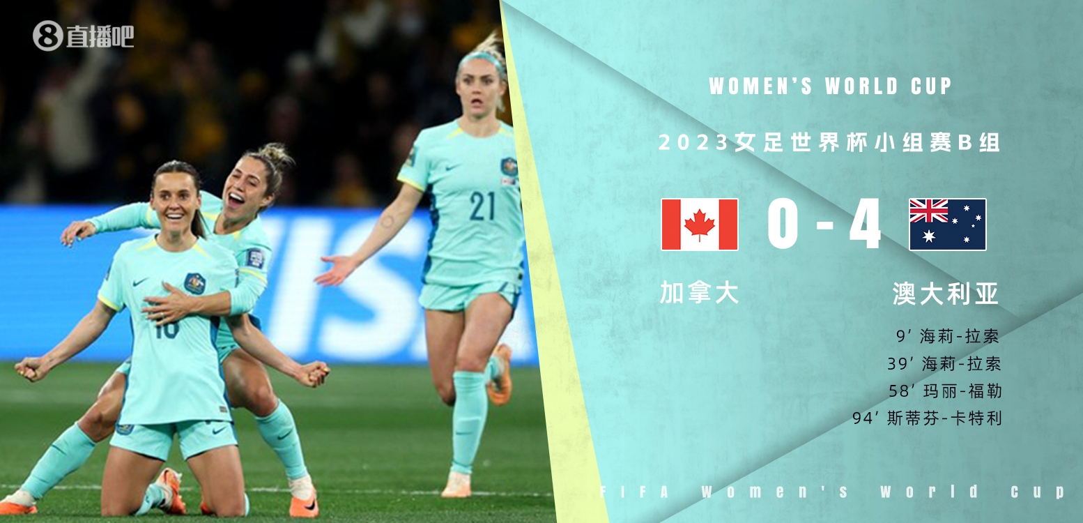 7月31日讯 北京时间7月31日18点,女足世界杯小组赛B组第三轮澳大利亚对阵加拿大。上半场,拉索梅开二度,福勒打进一球但经VAR回放后判定越位在先无效。下半场,福勒完成破门后又射中一次立柱,卡特利点射。全场比赛结束,澳大利亚4-0加拿大。澳大利亚以小组第一晋级淘汰赛,他们将面对D组的第二。
